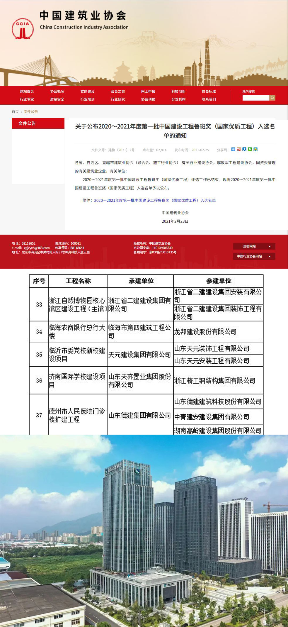 喜报!四建公司临海农商银行总行大楼工程获全国质量最高奖(鲁班奖)!