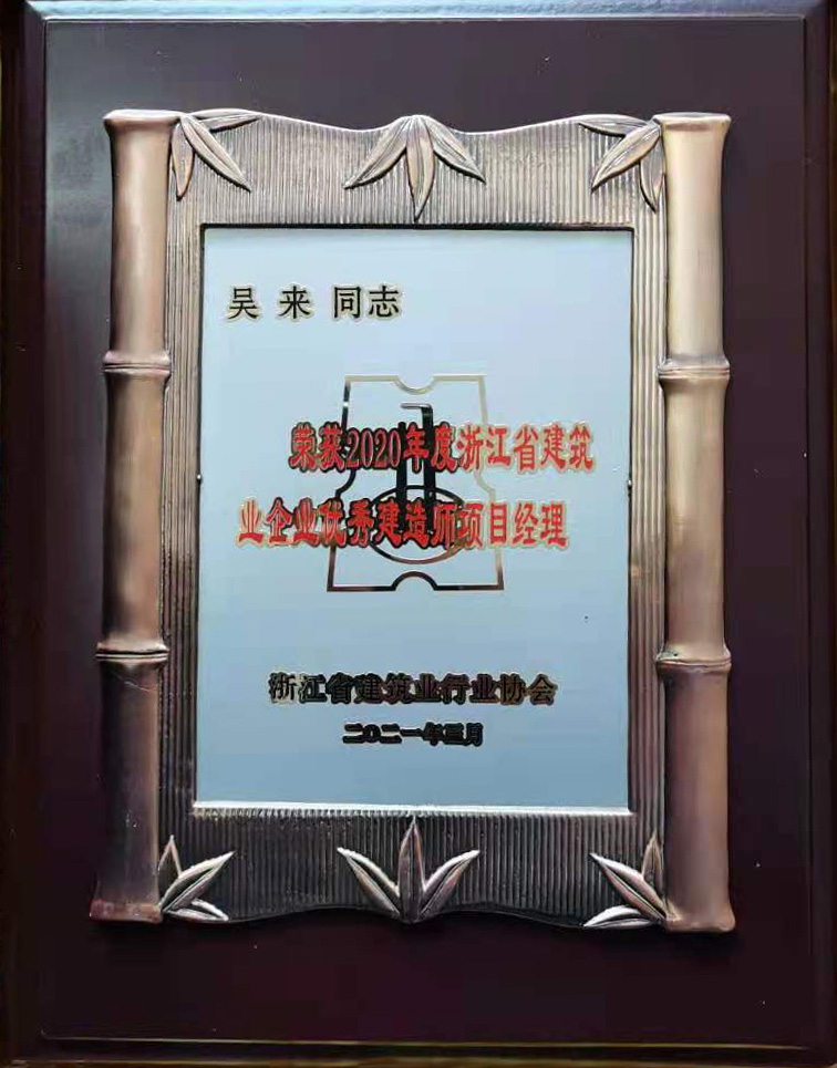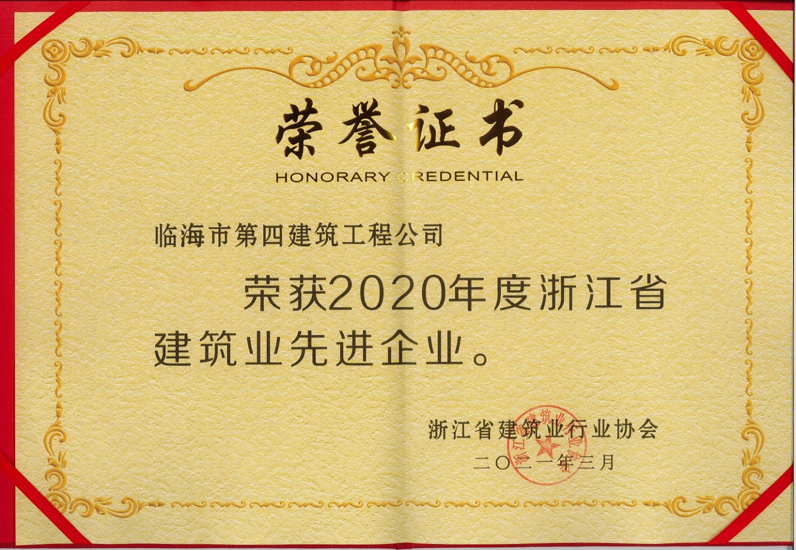 临海市第四建筑工程公司荣获2020年度浙江省建筑业先进企业,吴来同志荣获省建筑业优秀项目经理